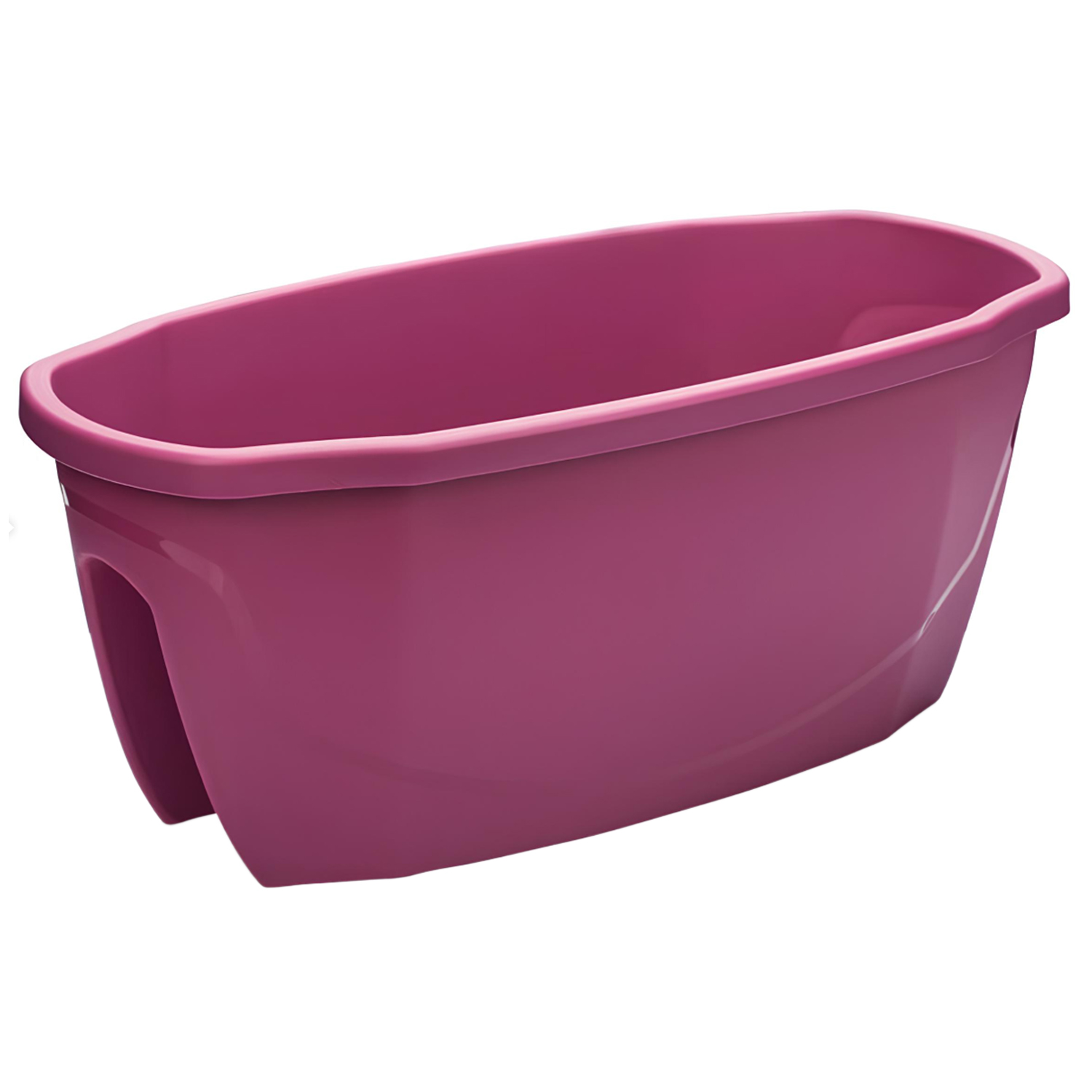 Балконный ящик для перил продолговатой формы и мягко закругленным верхним краем. Выглядит аккуратно и современно, позволяет вынести растения за пределы подоконника и освободить место на балконе. Специальная ниша в опорной части надежно фиксирует ящик на ограждении. Объем подходит для каскада ампельных цветов, зелени или компактных кустовых растений.