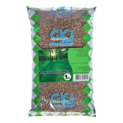 Смесь трав для газона «Теневыносливая», имеет: темный -сочный лист, средней ширины.