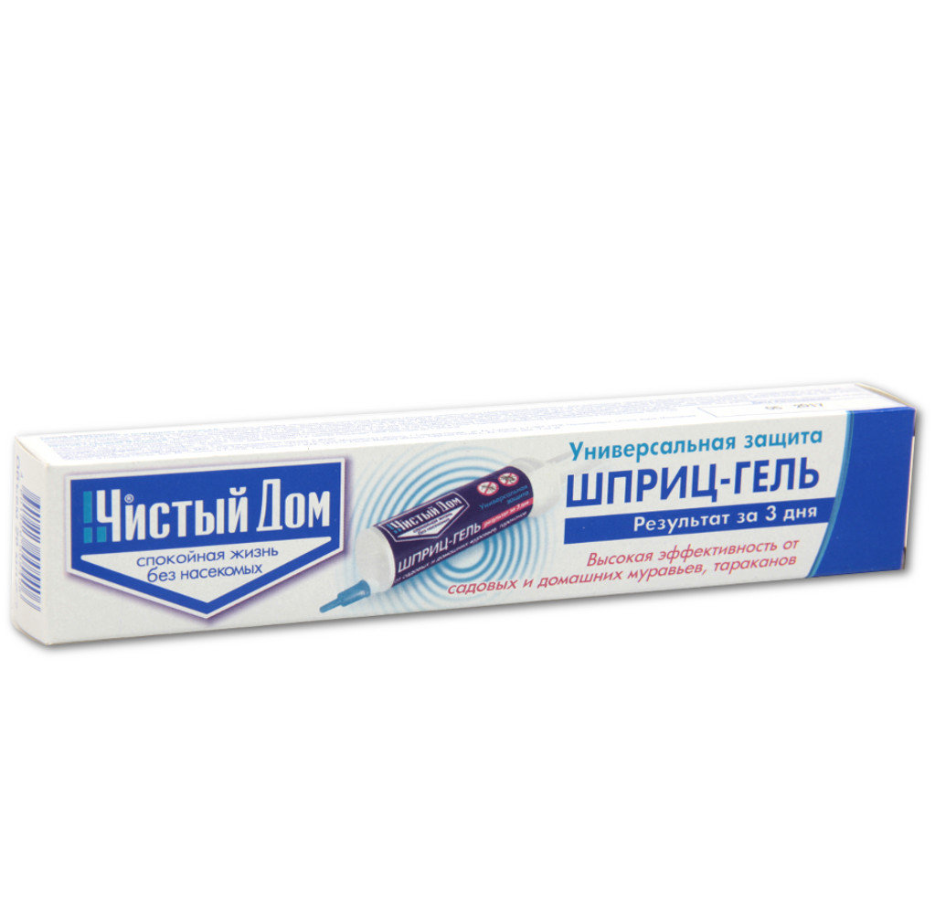 Для уничтожения тараканов и муравьев следует использовать эффективные средства, таким средством является гель-шприц Чистый Дом. Упаковка в виде шприца является самой популярной у потребителей. Гель является приманкой и содержит эффективную действующее вещество хлорприфос. Тараканы и муравьи поедают приманку и становятся носителями действующего вещества. Один таракан заражает до 50 родственников и все они погибают.