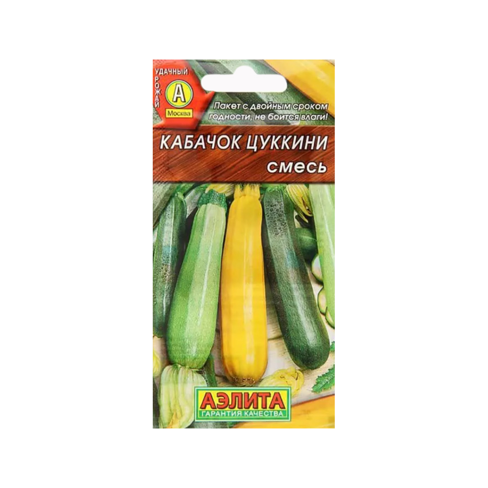 Смесь включает семена раннеспелых отечественных сортов: астроном, желтоплодный, черный красавец. Все три сорта – кустовые, слабо ветвящиеся, формируют растения компактного габитуса. Высокая адаптивность к условиям возделывания позволяет получать высокие урожаи (12-13 кг/м2) в разных зонах земледелия. Плоды цилиндрические, средней длины и диаметра, слаборебристые, светло-зеленый у астронома, желтый у желтоплодного и темно-зеленый у черного красавца. Масса товарного плода составляет 0,9-1,8 кг. Вкус отличный.