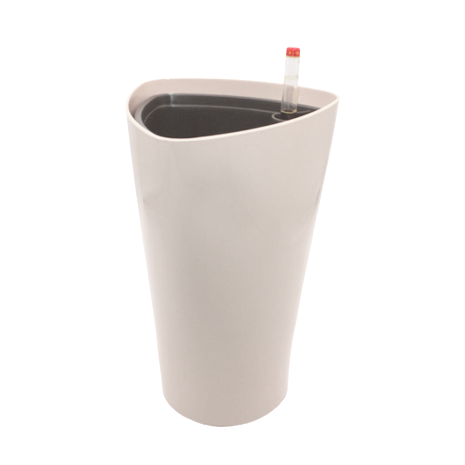 Кашпо с автополивом выполнено в вытянутой форме с мягко скругленными гранями. Лаконичный корпус смотрится аккуратно и современно, подходит для интерьера дома или офиса. Внутренняя система автополива помогает поддерживать стабильную влажность почвы, а индикатор уровня воды позволяет контролировать наполнение резервуара. Такое решение удобно для занятых людей и для растений, которым важен регулярный полив.