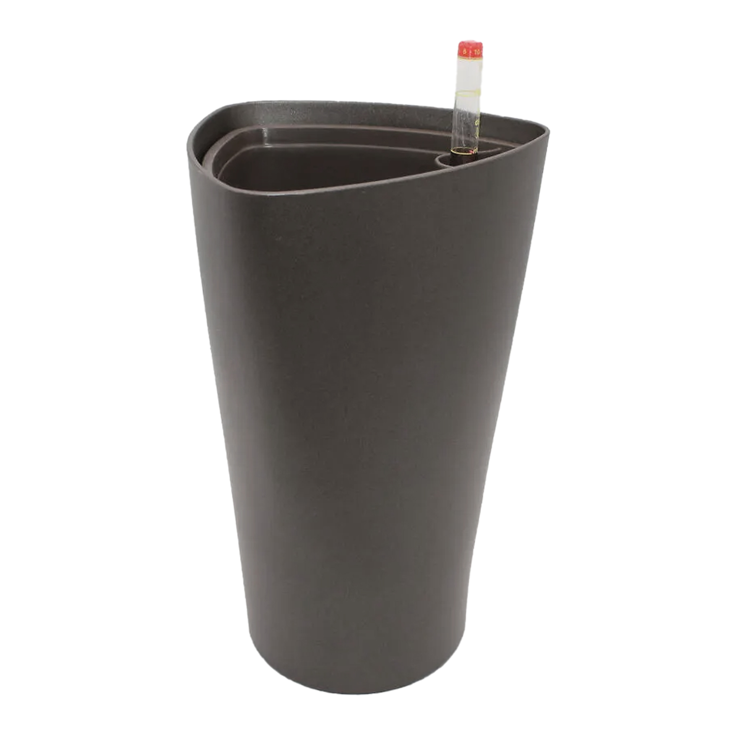 Кашпо с автополивом выполнено в вытянутой форме с мягко скругленными гранями. Лаконичный корпус смотрится аккуратно и современно, подходит для интерьера дома или офиса. Внутренняя система автополива помогает поддерживать стабильную влажность почвы, а индикатор уровня воды позволяет контролировать наполнение резервуара. Такое решение удобно для занятых людей и для растений, которым важен регулярный полив.