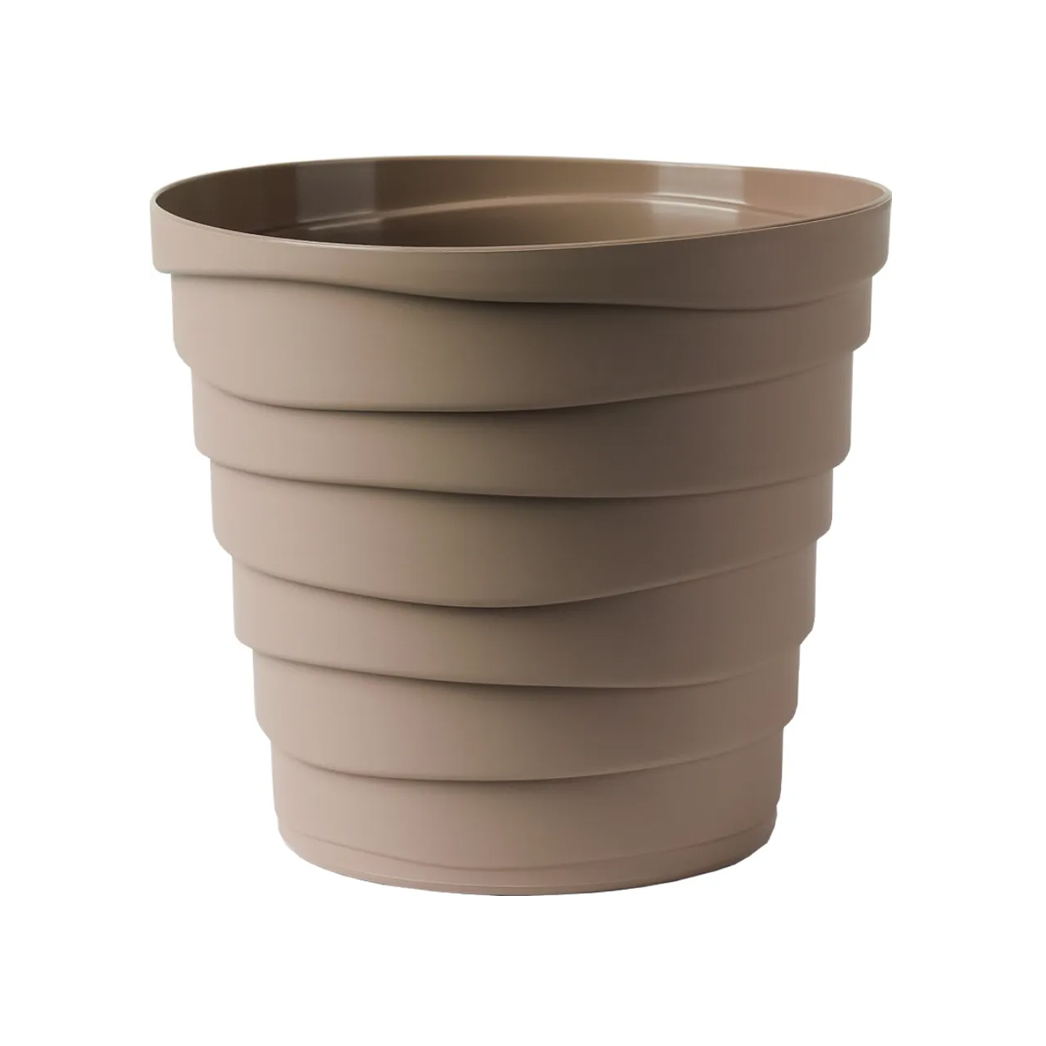 Кашпо «Бархан» отличается выразительной формой с плавными горизонтальными линиями, которые создают эффект мягких волн по всему корпусу. Силуэт слегка сужается к основанию, благодаря чему изделие выглядит легким и аккуратным. Широкий верхний край делает форму завершенной и удобной при посадке растений. Небольшой объем 1,4 л подходит для комнатных растений, суккулентов и декоративных композиций. Такое кашпо удобно разместить на подоконнике, полке или рабочем столе.