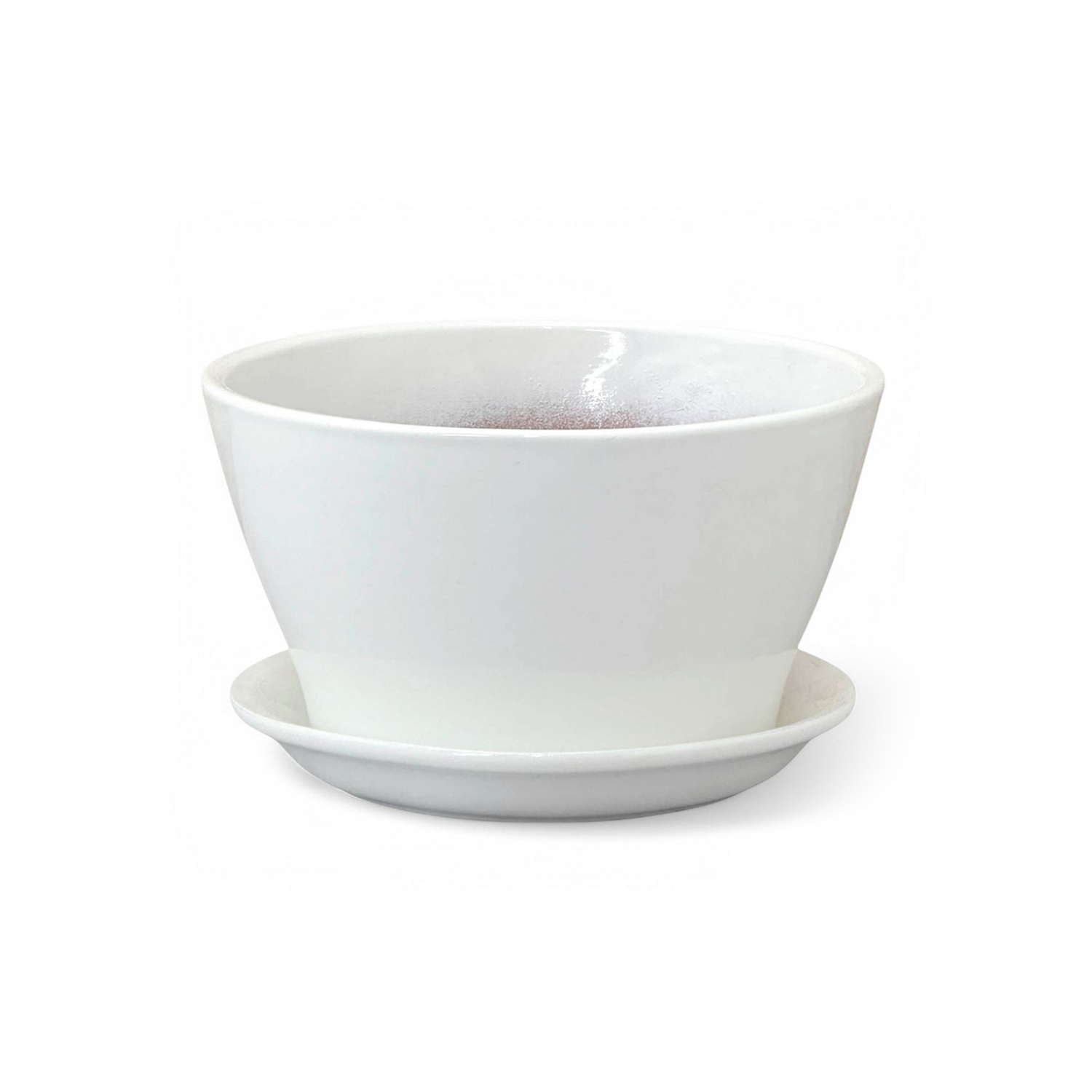Керамическое изделие классической формы с поддоном. Белый цвет и гладкая глянцевая поверхность делают его универсальным для любого интерьера: от минимализма до классики. Подходит для компактных комнатных растений, суккулентов, кактусов и небольших декоративных культур. Поддон помогает защитить поверхность от влаги и поддерживать порядок при поливе.