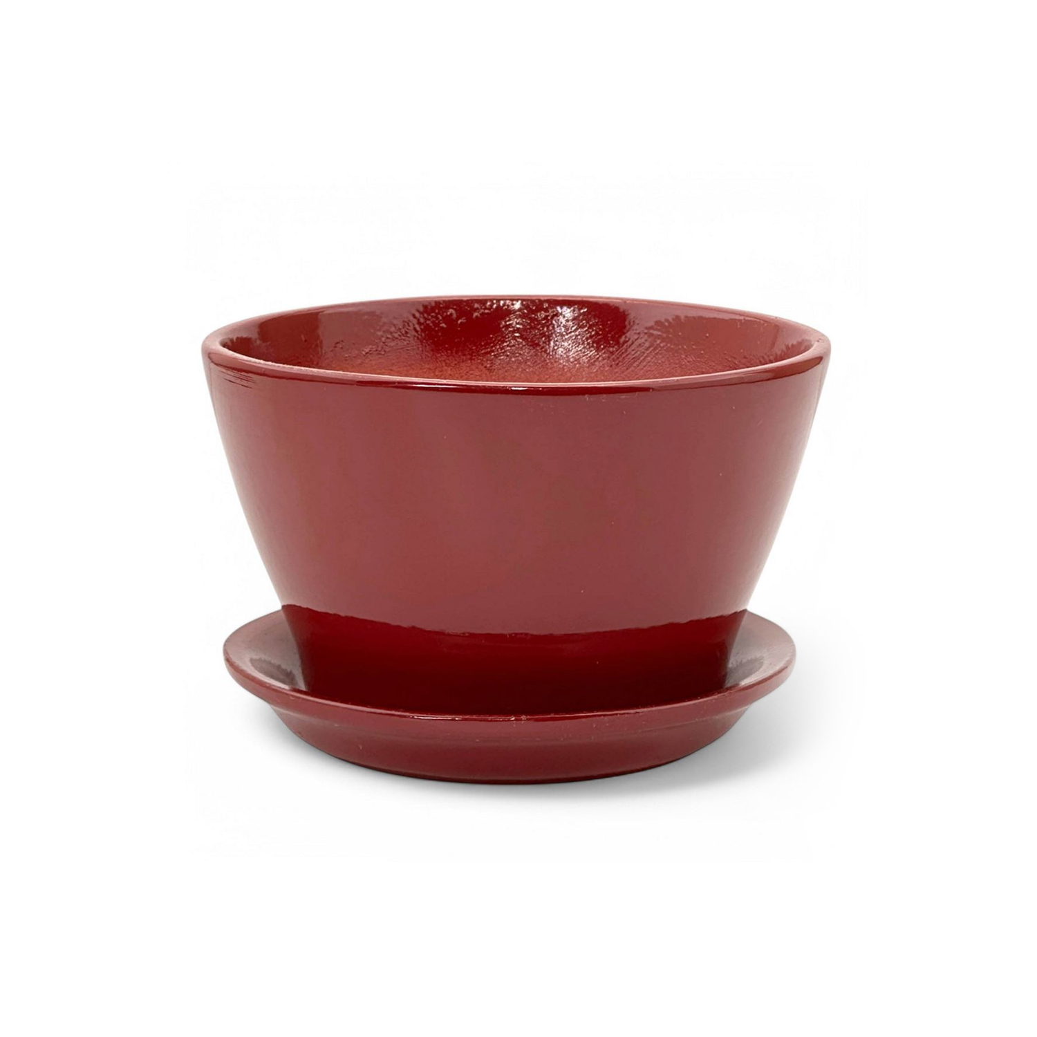 Керамическое изделие классической формы с поддоном. Глубокий бордовый оттенок делает изделие выразительным акцентом в интерьере и хорошо сочетается с зелеными и цветущими растениями. Подходит для небольших комнатных цветов, суккулентов, кактусов и декоративных композиций. Поддон помогает избежать попадания влаги на поверхность при поливе, а глянцевое покрытие облегчает уход.