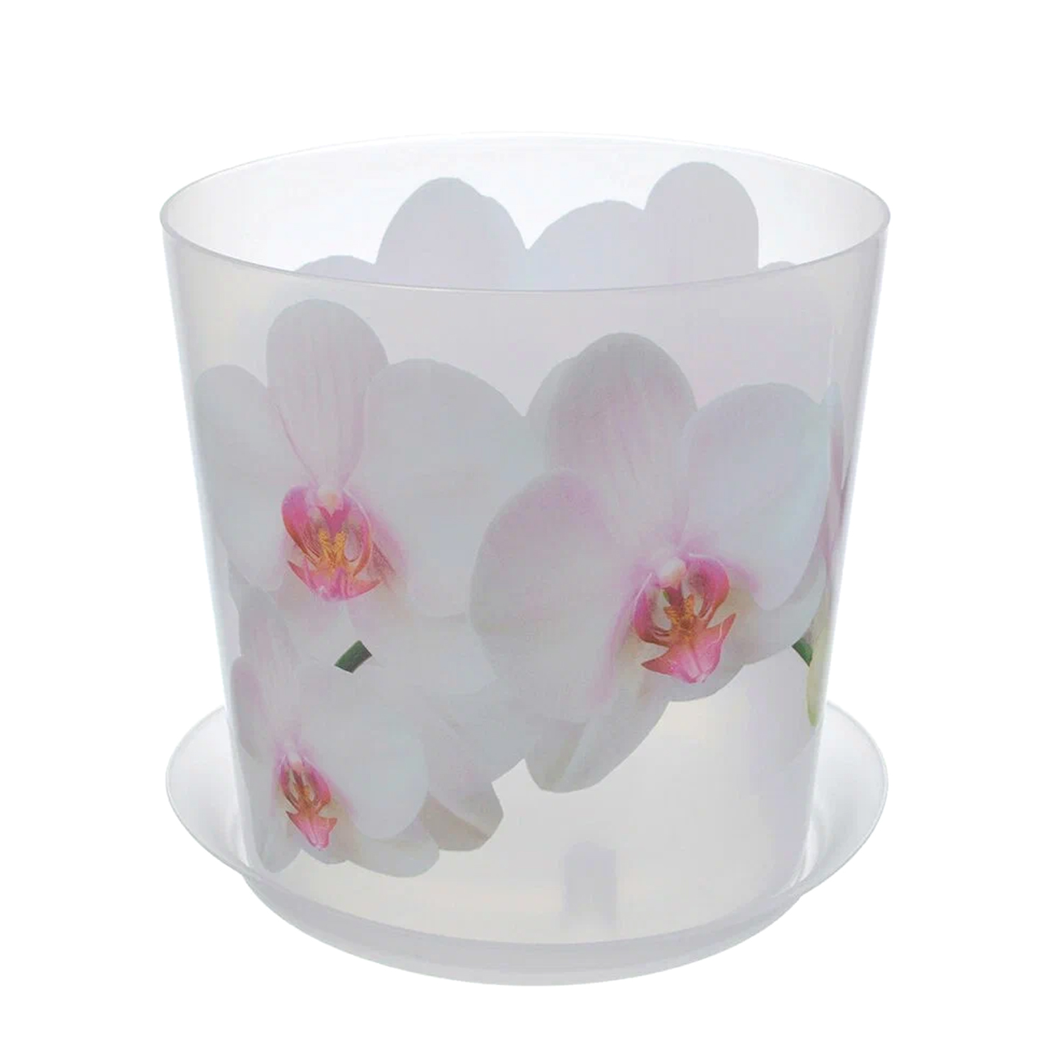 Кашпо с прозрачными стенками и нежным цветочным рисунком выглядит легким и декоративным. За счет прозрачности удобно контролировать состояние субстрата и корней. Подходит для подоконника, стола или полки, хорошо смотрится как самостоятельный элемент и в группе с другими кашпо.