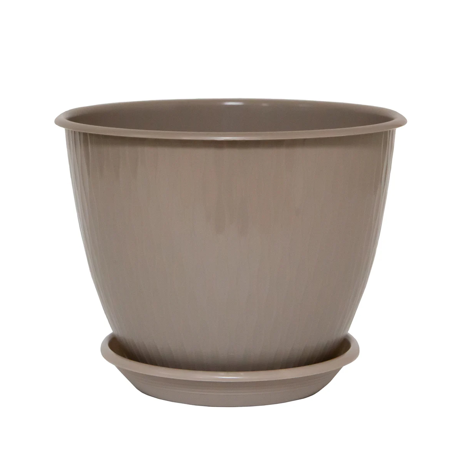 Кашпо «Корсика» с поддоном в оттенке фраппе выглядит мягко и спокойно. Теплый нейтральный цвет создает ощущение уюта и легко сочетается с натуральными оттенками в интерьере. Такое кашпо хорошо смотрится на подоконнике, полке или столе, подходит для домашнего и рабочего пространства. Поддон в комплекте помогает поддерживать чистоту и защищает поверхность от влаги.