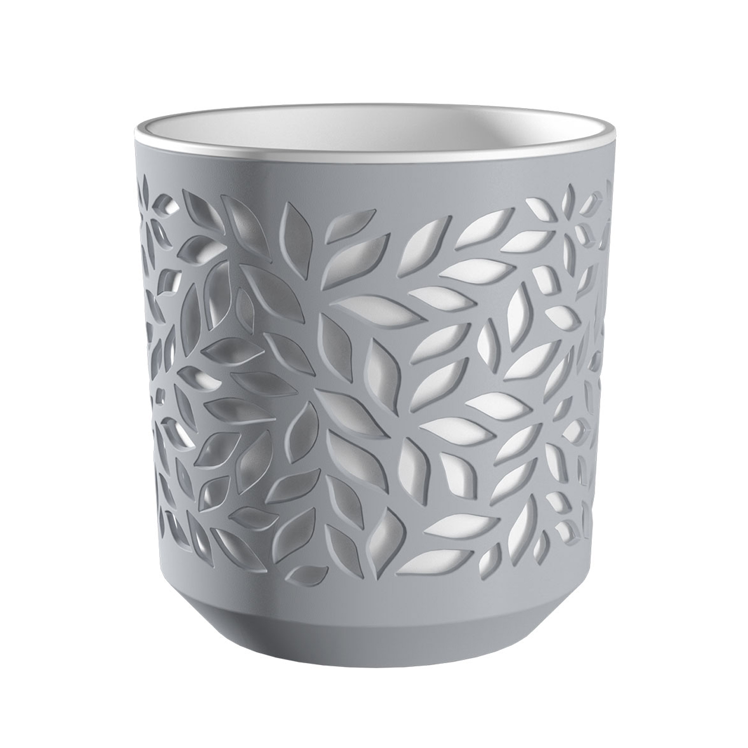 Это кашпо среднего размера обладает выразительной фактурой, поверхность которой украшена изящным рельефным узором в виде листьев. Объем в два с половиной литра оптимален для большинства комнатных растений. Благодаря аккуратной круглой форме и детальной проработке орнамента, аксессуар выглядит легко и эстетично. Он станет прекрасным дополнением для подоконника, полки или рабочего стола в современном интерьере.