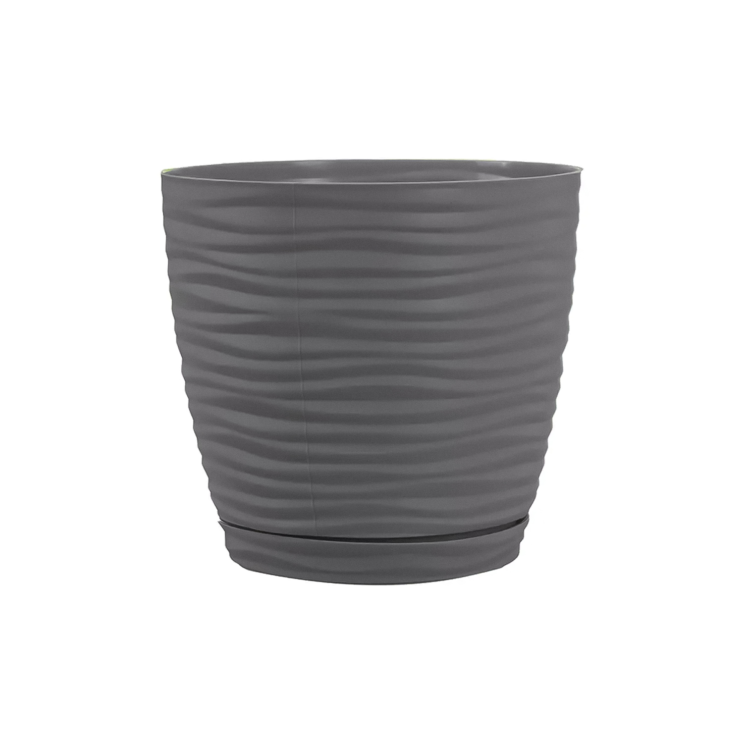Кашпо с плавной округлой формой и волнообразным рельефом выглядит аккуратно и современно. Горизонтальные линии создают мягкую фактуру и добавляют ощущение движения. Подходит для комнатных растений небольшого размера, гармонично смотрится на подоконнике, полке или столе, добавляя интерьеру свежий зеленый акцент.