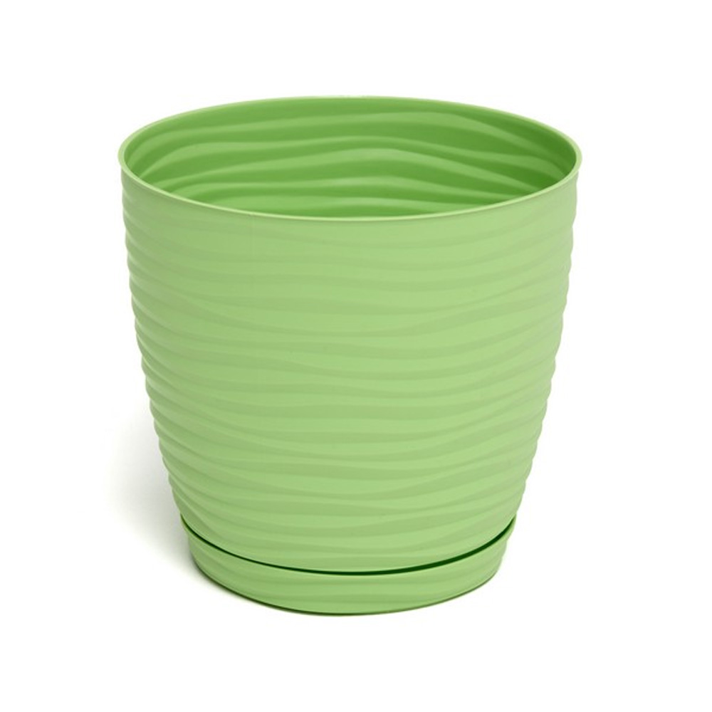 Кашпо с плавной округлой формой и волнообразным рельефом выглядит аккуратно и современно. Горизонтальные линии создают мягкую фактуру и добавляют ощущение движения. Подходит для комнатных растений среднего размера, гармонично смотрится на подоконнике, полке или столе, добавляя интерьеру свежий зеленый акцент.