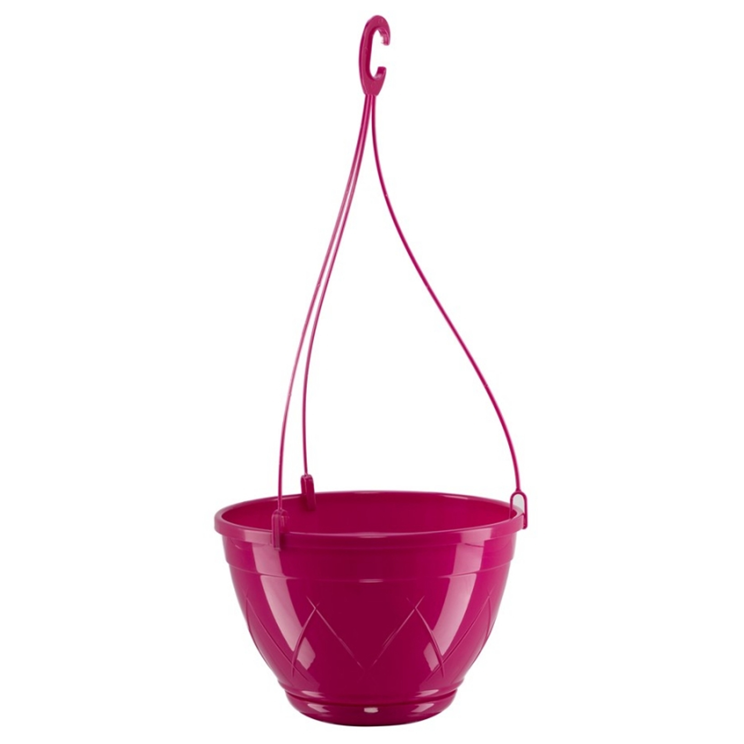 Подвесное кашпо с округлой формой удобно для размещения на балконе, террасе или в интерьере. Лиловый цвет выглядит ярко и аккуратно, добавляет пространству живой акцент и хорошо сочетается с зеленью растений. Декоративный рельеф на корпусе делает кашпо выразительным, а подвес с усами длиной 40 см позволяет легко разместить его на крючке или перекладине. Поддон в комплекте помогает поддерживать чистоту при поливе. Подходит для ампельных и компактных декоративных растений.