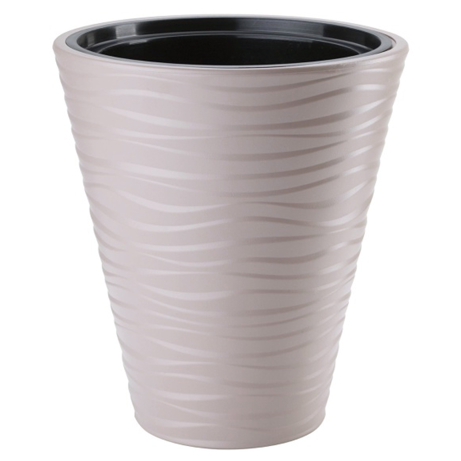 Кашпо «Сахара» выполнено в расширяющейся кверху форме с плавным силуэтом. Поверхность украшена мягким волнистым рельефом, который добавляет объема и делает модель более выразительной. Объем 9 л подходит для напольного размещения и оформления жилых и рабочих пространств.