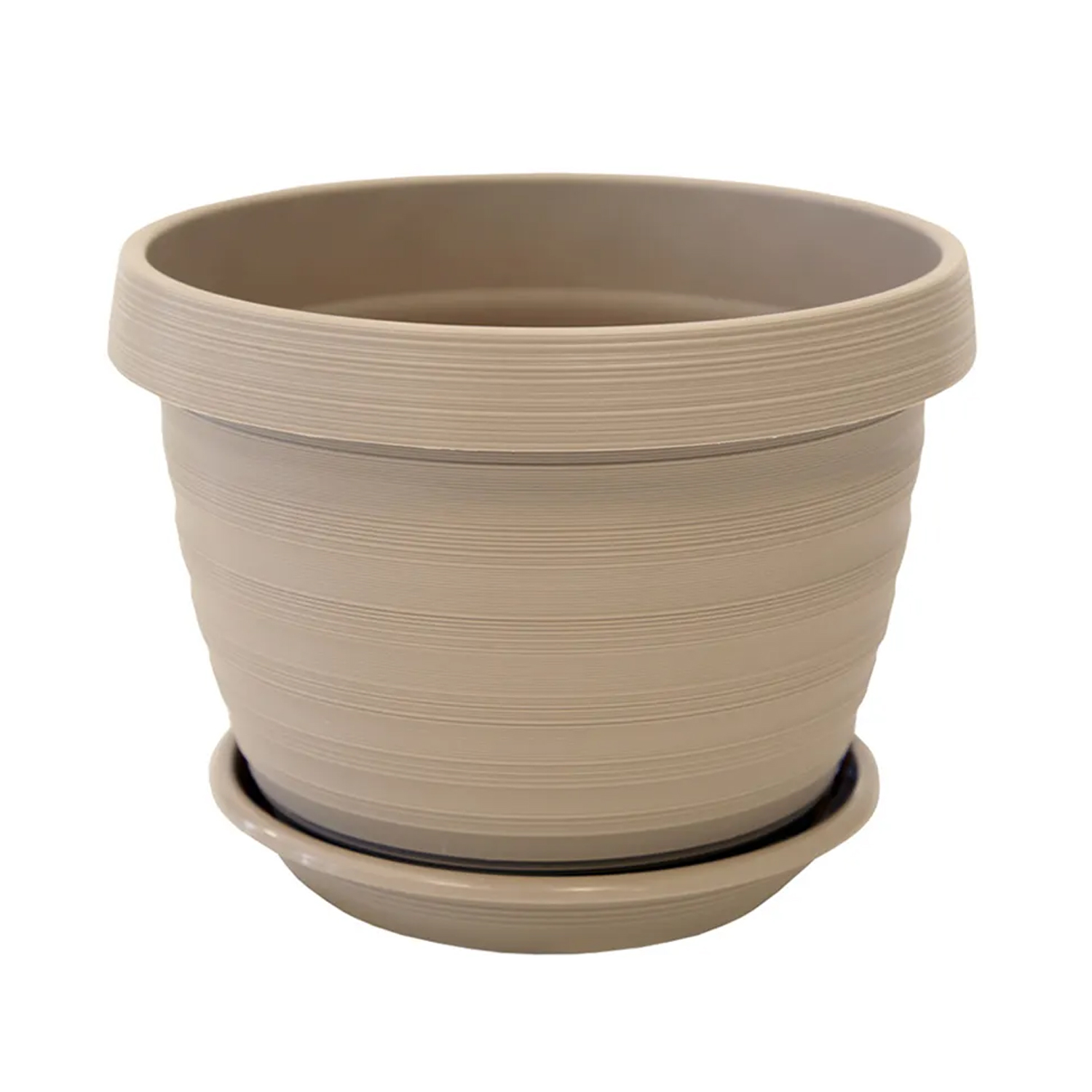 Кашпо «Толедо» выполнено в классической округлой форме с легким расширением кверху. Широкий бортик делает силуэт выразительным и аккуратным, а горизонтальная фактура по корпусу добавляет визуальный ритм. В комплекте предусмотрен поддон, который поддерживает чистоту поверхности и собирает лишнюю влагу. Подойдет для комнатных растений небольшого и среднего размера, органично смотрится на подоконнике, полке или рабочем столе.