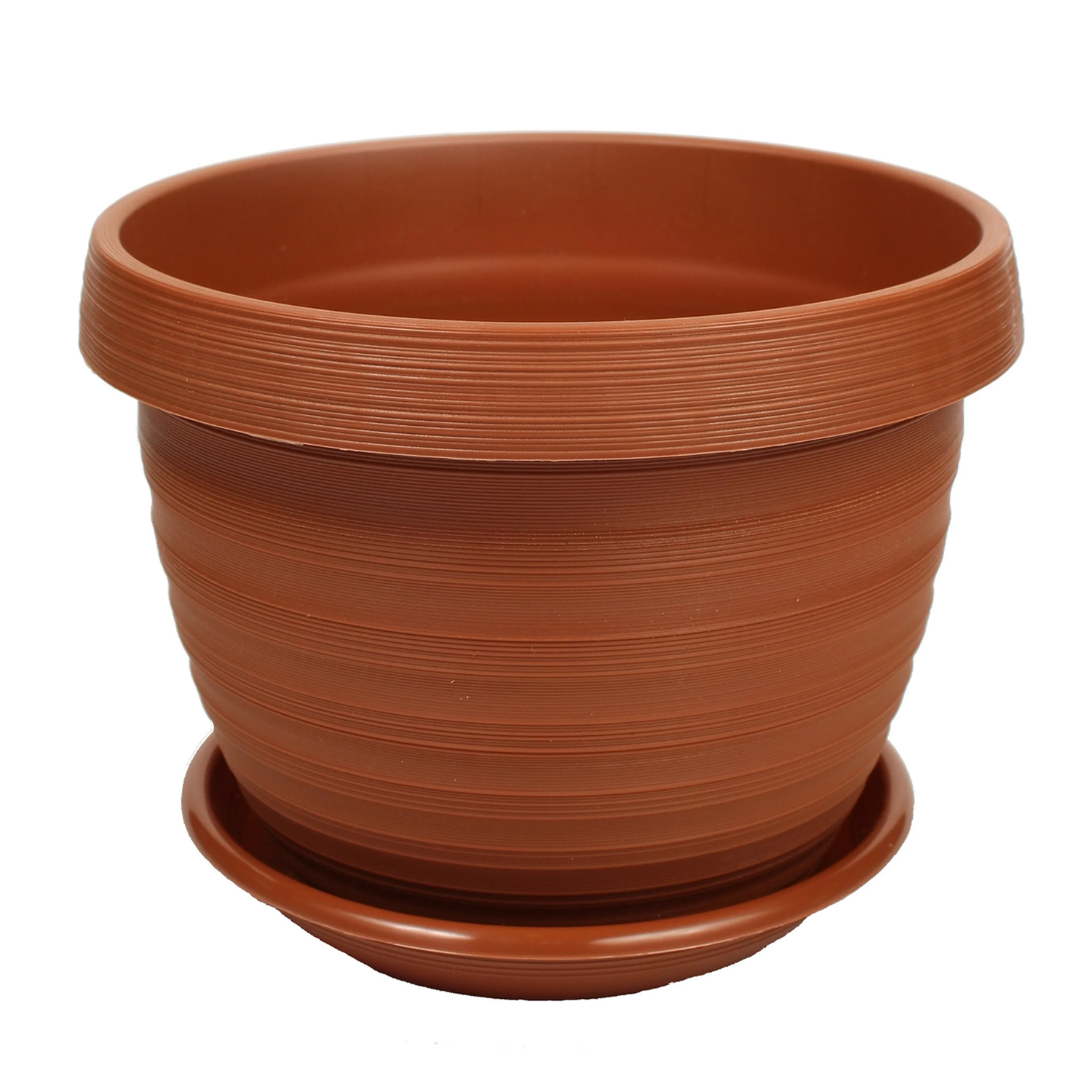 Кашпо «Толедо» выполнено в лаконичном дизайне с плавным расширением к верхнему краю. Аккуратный широкий бортик подчеркивает форму, а тонкая горизонтальная фактура по корпусу придает поверхности выразительность. В комплект входит поддон, который защищает подоконник или стол от лишней влаги. Объем подойдет для домашних растений среднего размера, кашпо гармонично впишется в интерьер кухни, комнаты или рабочего пространства.