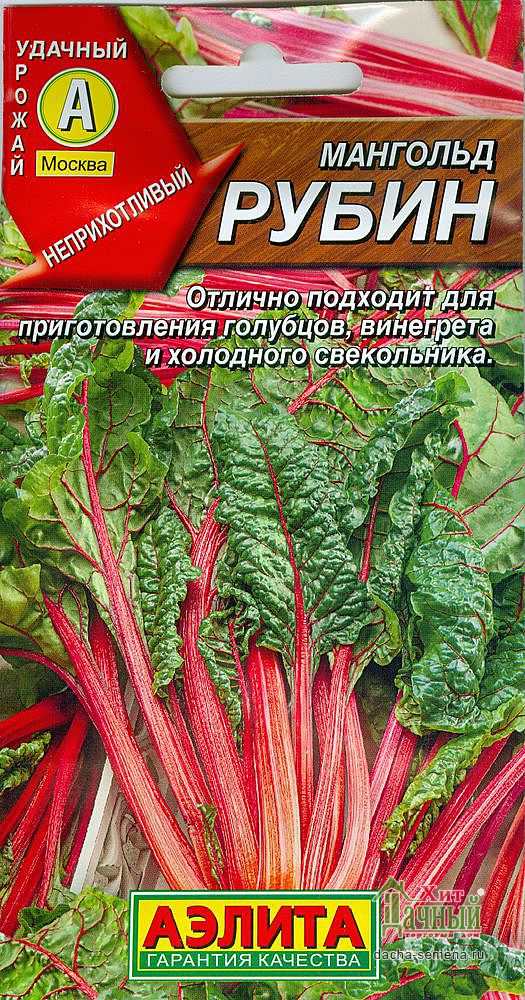Высокоурожайный среднеспелый сорт. От всходов до первой срезки листьев 40-47 дней, до массовой уборки – 80-90 дней. Розетки листьев вертикальные, компактные. Черешки длиной 20-30 см, листья –20-25 см. Масса продуктивной части растения 700-800 г. Листья и черешки сочные, без грубых волокон. Используются в домашней кулинарии и для консервирования. Урожайность зеленой массы 4,2 кг/м2 . Возможен рассадный способ культивирования – семена на рассаду сеют в середине апреля, высаживают на постоянное место с середины мая. Мангольд хорошо удается на легких, заправленных органическими удобрениями, нейтральных по кислотности почвах.