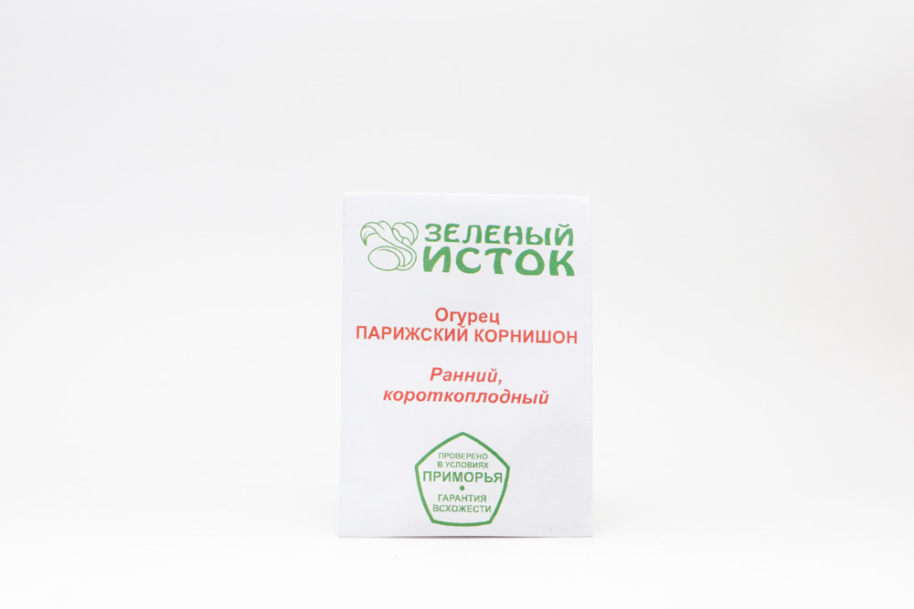 Раннеспелый (45-50 дней от всходов до плодоношения) пчелоопыляемый сорт для открытого грунта. Растение длинноплетистое, среднерослое, средневетвистое. Зеленец веретеновидный, короткий, зеленый с полосами средней длины, крупнобугорчатый с черным опушением. Масса 57-78 г. Выращивают рассадным и безрассадным способом. Рекомендуются ежедневные сборы корнишонов длиной 5-7 см. Сорт ценится за отличный вкус и аромат хрустящих плодов, высокий выход товарной продукции, устойчивость к мучнистой и ложной мучнистьй росе. Идеален для консервирования, засолки, подходит для приготовления свежих летних салатов. Урожайность 2,5-4,0 кг/м2.
