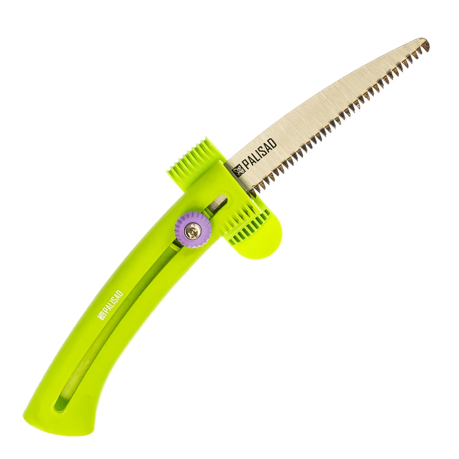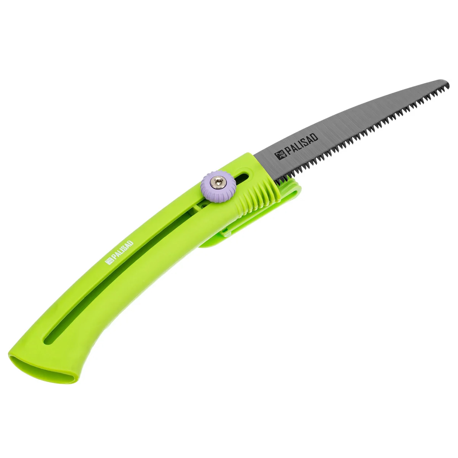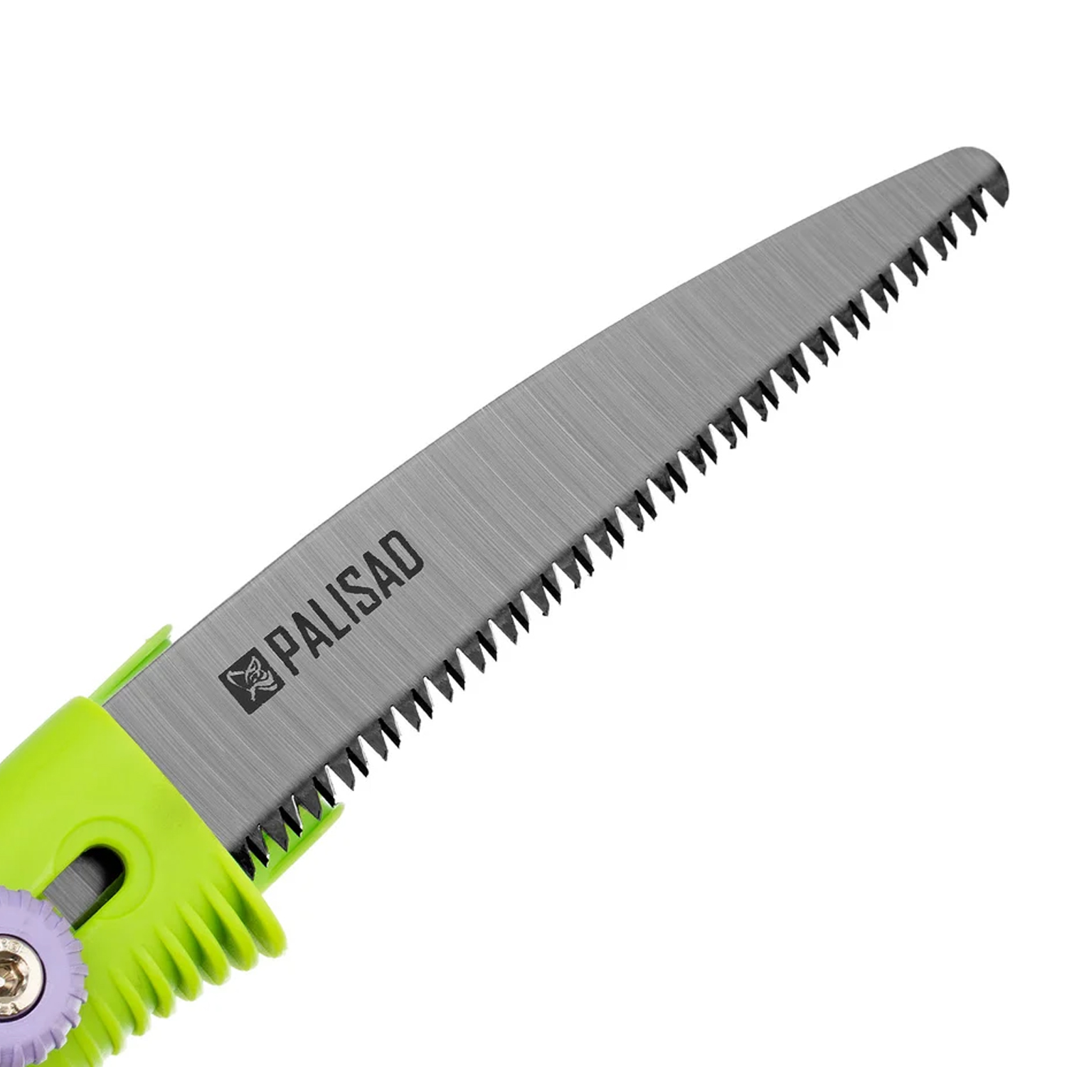 Выдвижная пила оснащена полотном из высокоуглеродистой стали 65Mn с хромовым покрытием, что обеспечивает прочность и долговечность инструмента. Твердость режущей кромки 52 HRC гарантирует износостойкость, а трехгранная заточка зубьев позволяет легко распиливать как сухую, так и влажную древесину. Выдвижной механизм делает хранение и транспортировку безопасными и удобными. Эргономичная пластиковая рукоятка обеспечивает комфорт при работе и надежный контроль над инструментом.