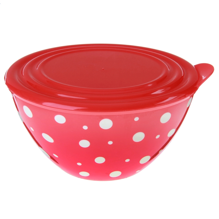 Салатник «Горошек» 1,45л с крышкой бело-красный