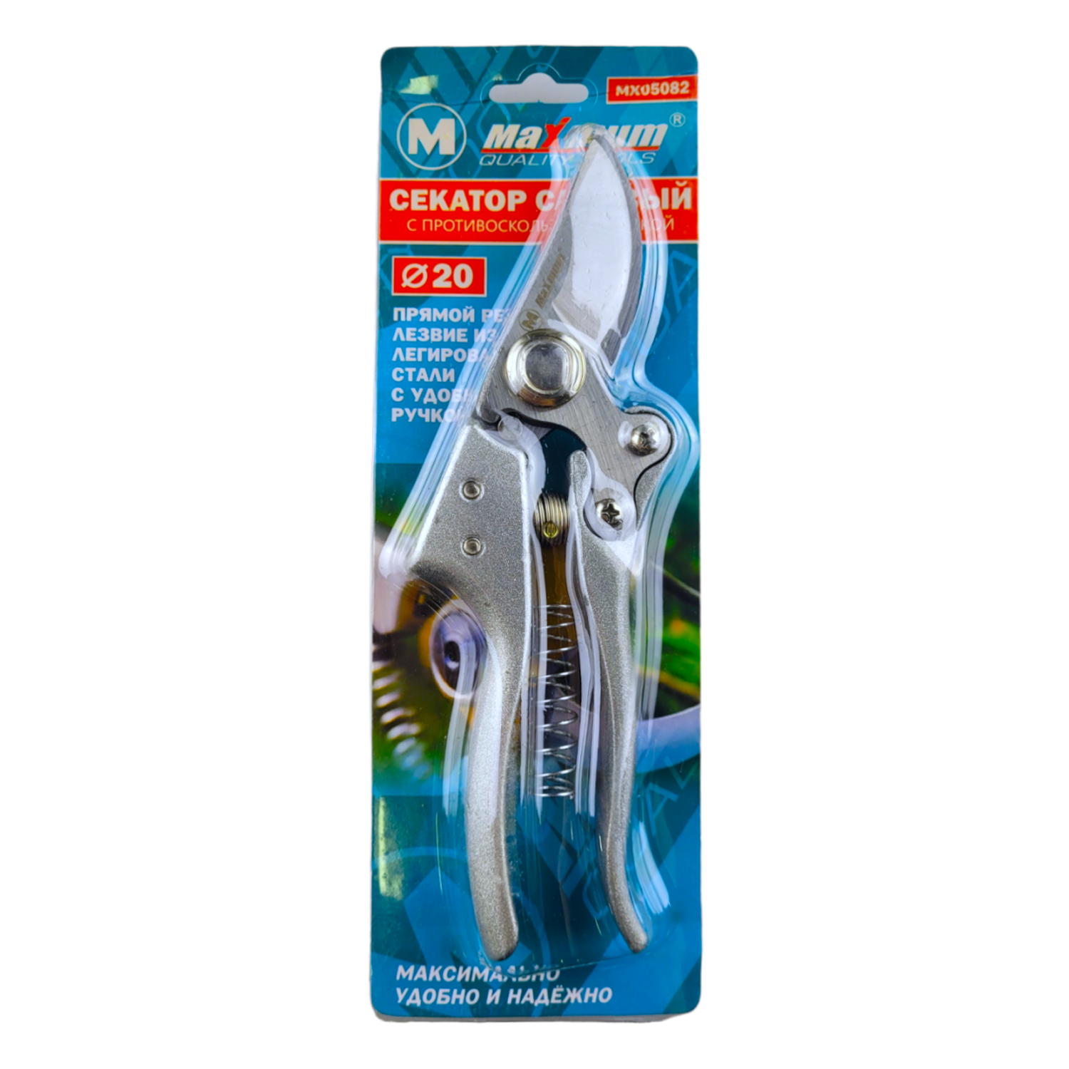 Секатор садовый Maximum 05082 — надежный инструмент для ухода за растениями на участке. Он оснащен прочными лезвиями из легированной стали, которые обеспечивают прямой и чистый рез веток диаметром до 20 мм. Удобные рукоятки делают работу комфортной, а противоскользящее покрытие снижает нагрузку на руки. Возвратная пружина облегчает использование, ускоряя процесс обрезки. Такой секатор станет универсальным помощником при обрезке деревьев, кустарников и цветов.