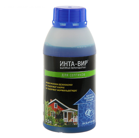 «Инта-Вир» — средство для консервации содержимого септиков. Способствует быстрому разложению отходов, предотвращает газообразование и развитие гнилостных бактерий.