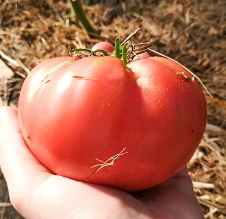 Среднеспелый салатный сорт с очень вкусными плодами. Рекомендуется для возделывания в открытом и защищенном грунте. Растение индетерминантное, требует подвязки и пасынкования. Плоды плоскоокруглые, среднеребристые, розового цвета, крупные, массой 250-300 г (отдельные до 600 г), мясистые, сочные, великолепного вкуса. Сорт рекомендуется для непосредственного потребления, приготовления салатов и соков, переработки на томатопродукты, а также для засолки.